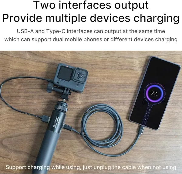 - Compatibility: Smartphones, cameras, action cams, LED lights, microphones, and other USB-powered devices